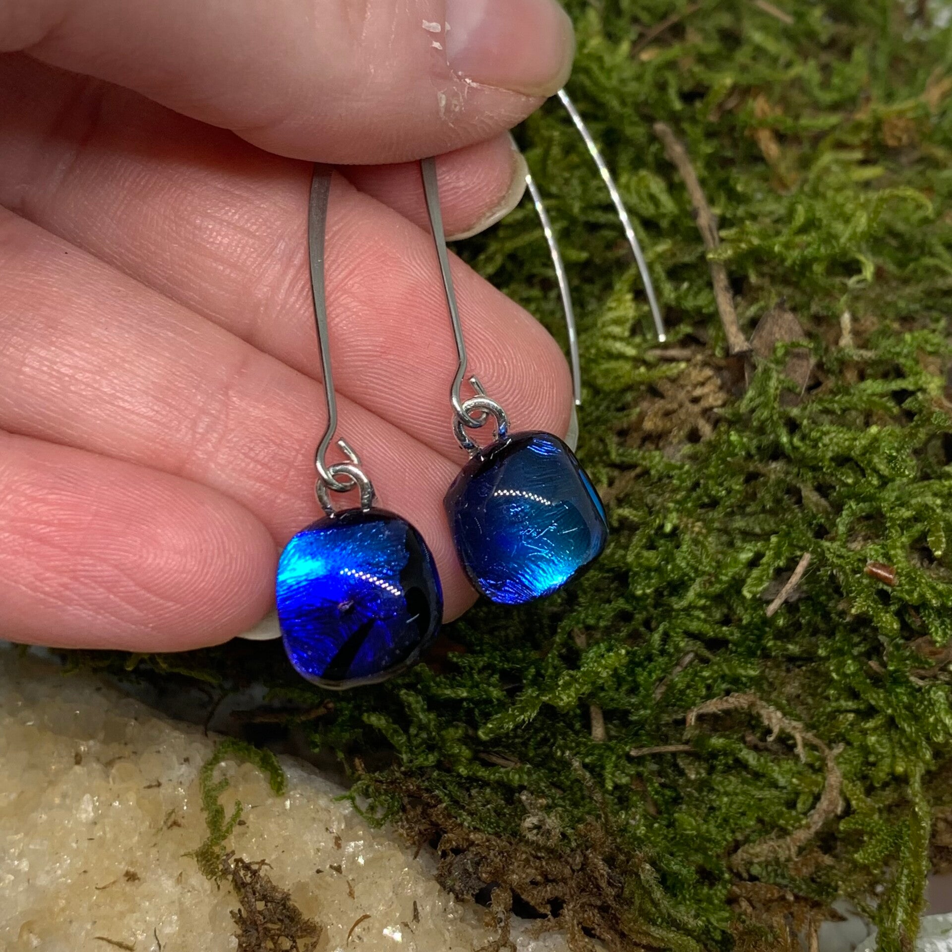 Uniek oorbellen met hangers van gefused glas, gemaakt in eigen atelier. Haakjes zijn gemaakt van rvs, 100% nikkelvrij.