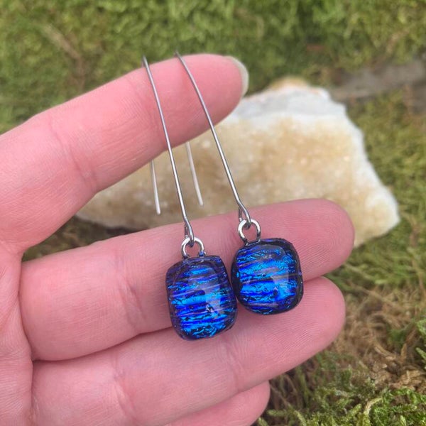 Unieke oorbellen gemaakt van glas, in combinatie met rvs oorhaakjes.