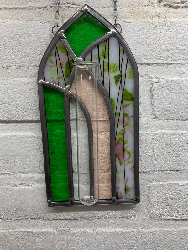 handgemaakt naar eigen ontwerp, ieder uniek en met zorg samengesteld. De techniek gebruikt voor deze hanger is traditioneel glas in lood.
