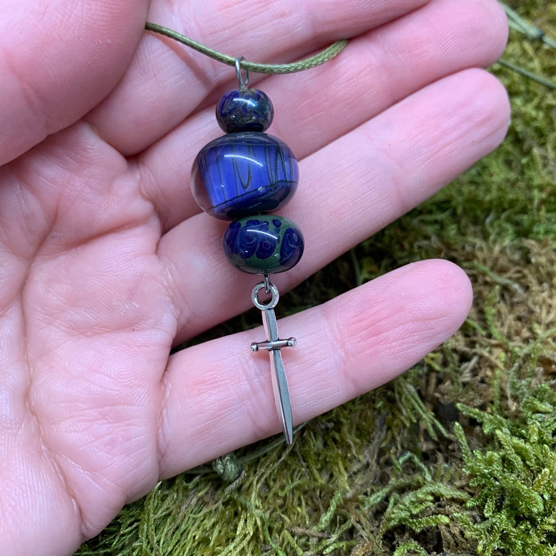 Unieke handgemaakte glazen kralen aan een verstelbaar koord. Gemaakt in eigen atelier.